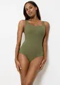 Dieser Badeanzug mit Bügeln kombiniert elegante Optik mit durchdachter Funktionalität für deinen perfekten Schwimmbad- oder Strandtag. Das sorgfältig entwickelte Design lässt deine Brust schmaler wirken und bietet dir zugleich besten Halt beim Schwimmen, Sitzen oder Spazierengehen am Strand. Jede Bewegung wird von der intelligenten Konstruktion unterstützt, damit du dich rundum wohlfühlst.- Minimizer-Badeanzug mit Bügeln und ohne Einlagen