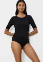 Dieses Kurzarm Top vereint Bequemlichkeit und Dehnbarkeit für den perfekten Alltagsbegleiter. Das weiche, figurumschmeichelnde Material fühlt sich an, als wäre es nur für dich gemacht und passt sich deinen Bewegungen mühelos an. Perfekt als Zwischenlage oder als eigenständiges Oberteil getragen.- Kurzärmliges Oberteil mit klassischem Rundhalsausschnitt
